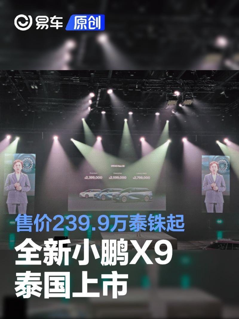 易车讯 3月19日,小鹏汽车平台产品营销总监郑荣卿在微博上表示,全新小鹏X9泰国上市,售价239.9万泰铢起(约合人民币50.56万元)。